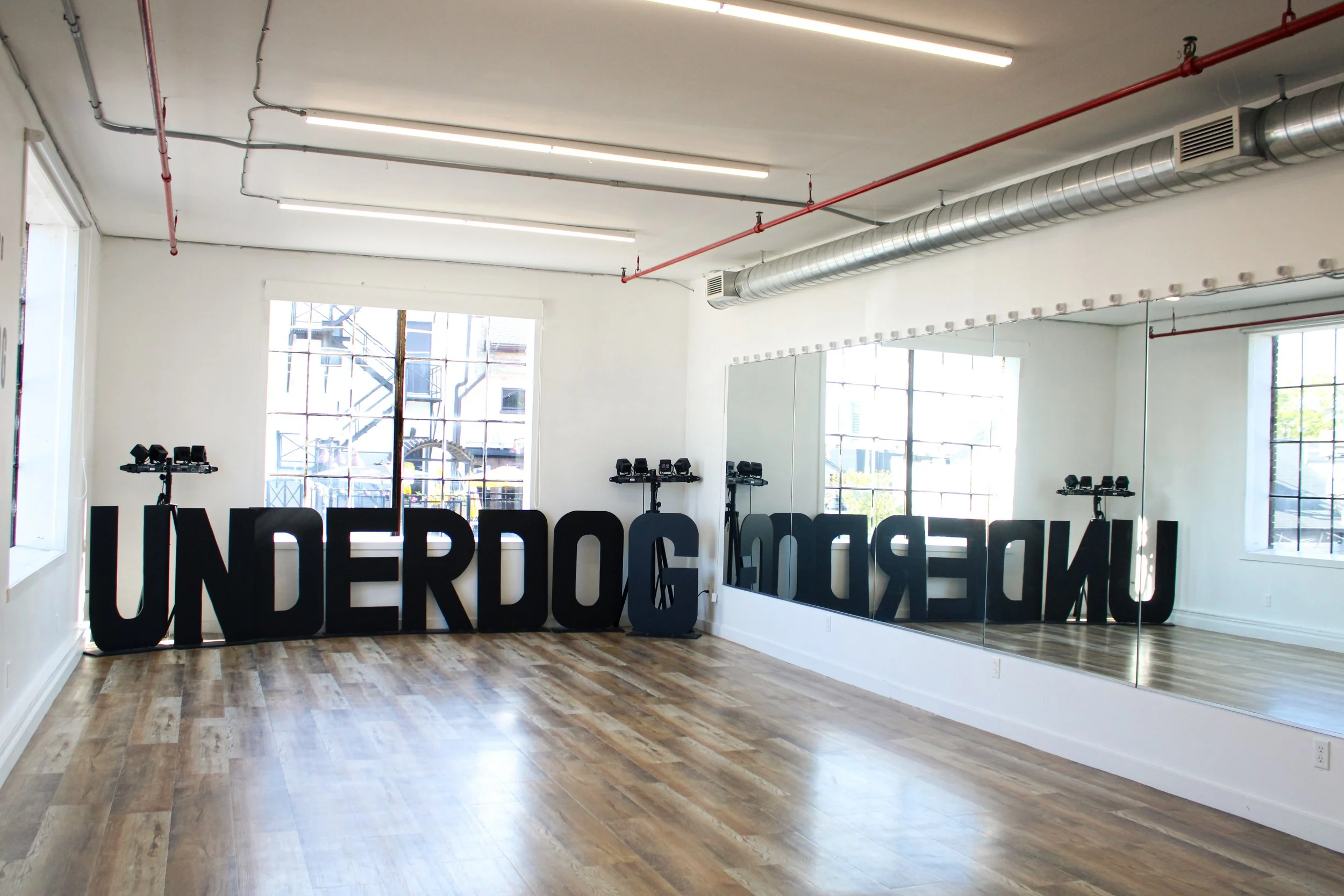 Our studio regularly undergoes updates and upgrades for you as it grows. We are happy to offer a gender neutral dressing room with a changing stall for privacy. We believe the little things make a big difference, so we always have hair elastics, bobby pins, dry shampoo, spray on deodorant, band aids, and other handy items here for our dancers! We want you to feel at home at the Underdog.